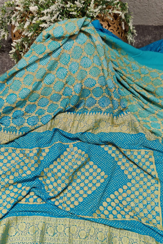 BLUE GEORGETTE PURE HANDLOOM BANDHEJ SAREE