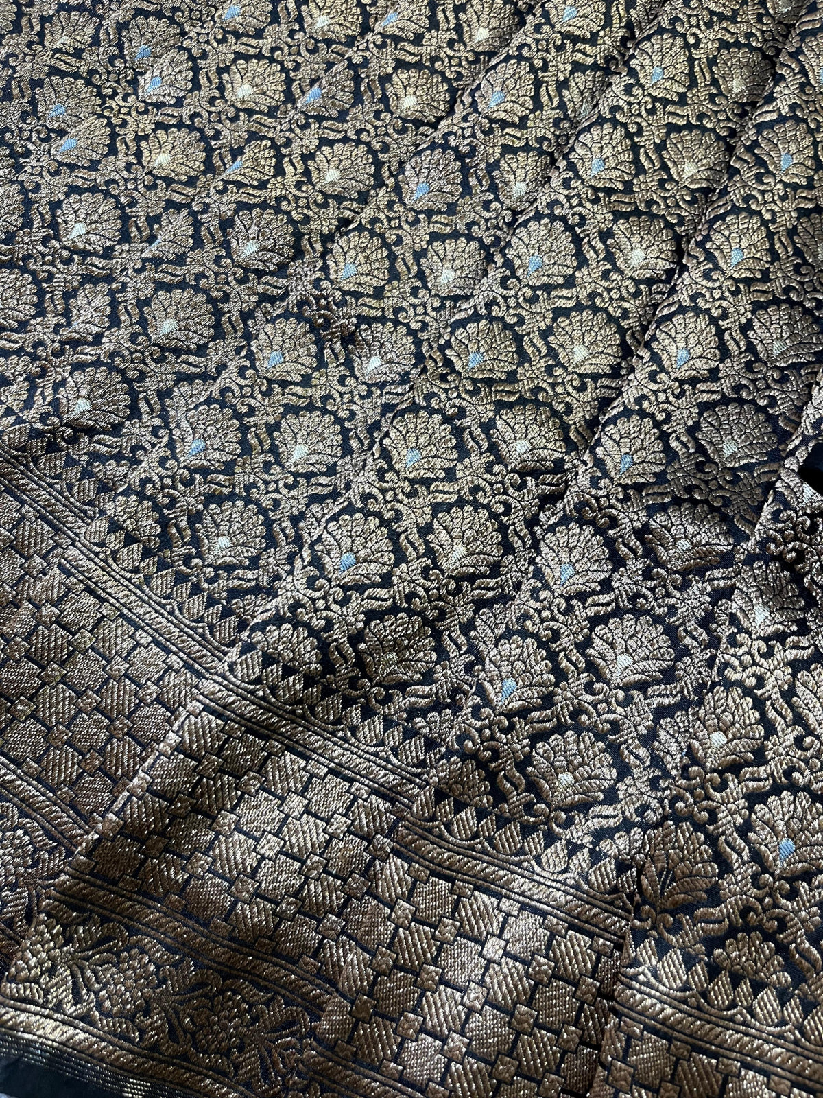 BLACK SILK PURE HANDLOOM BANARASI SAREE