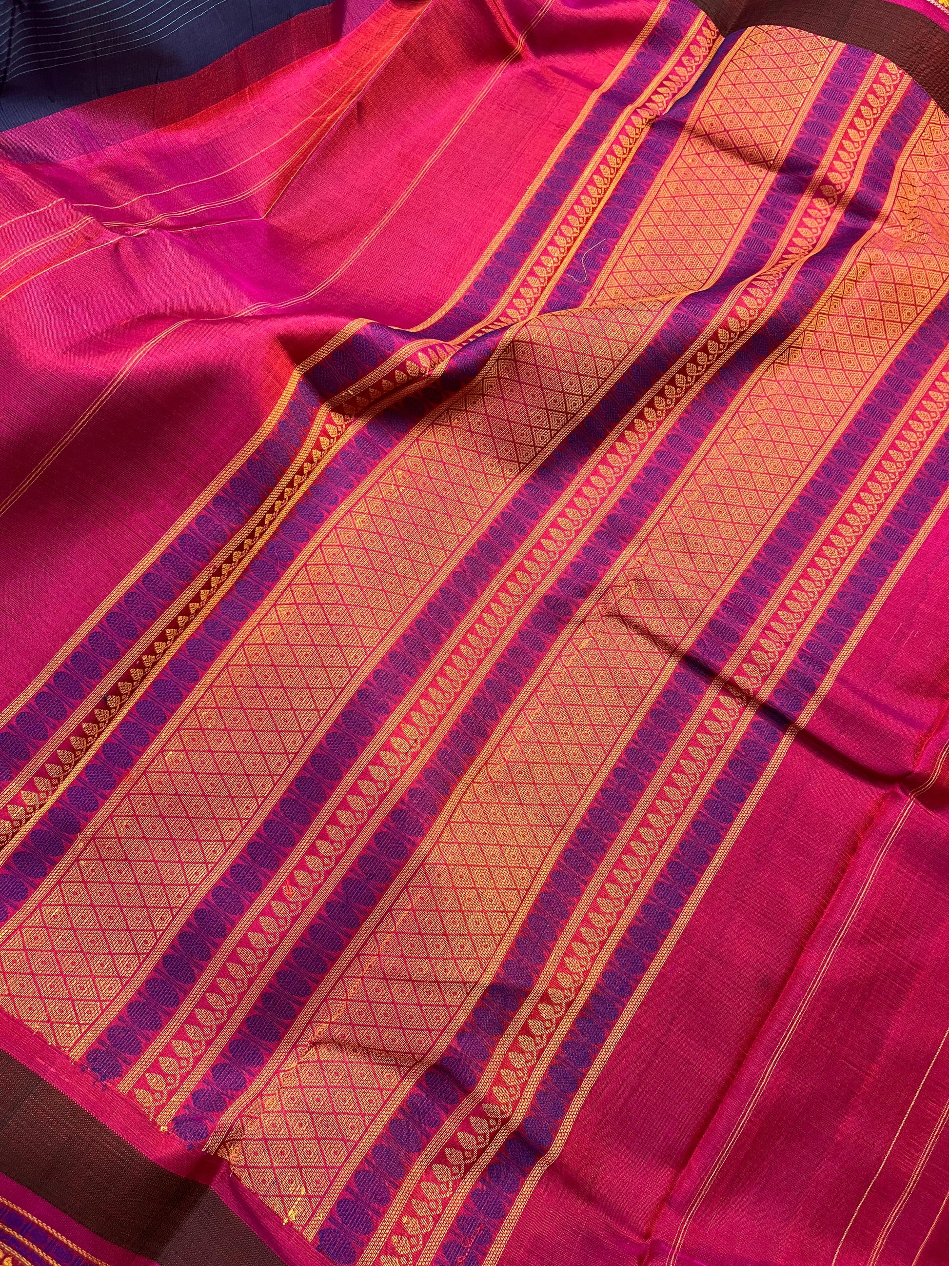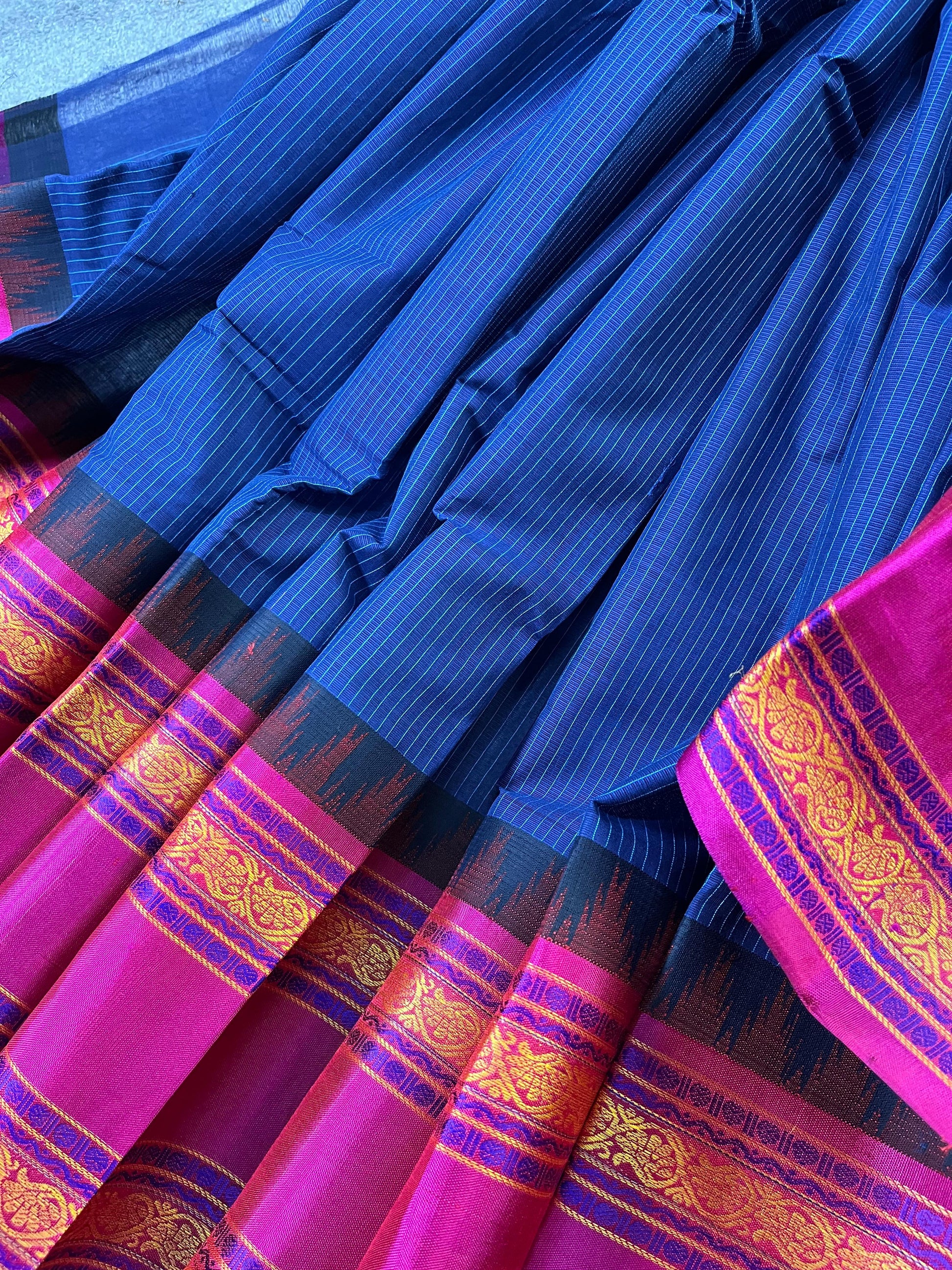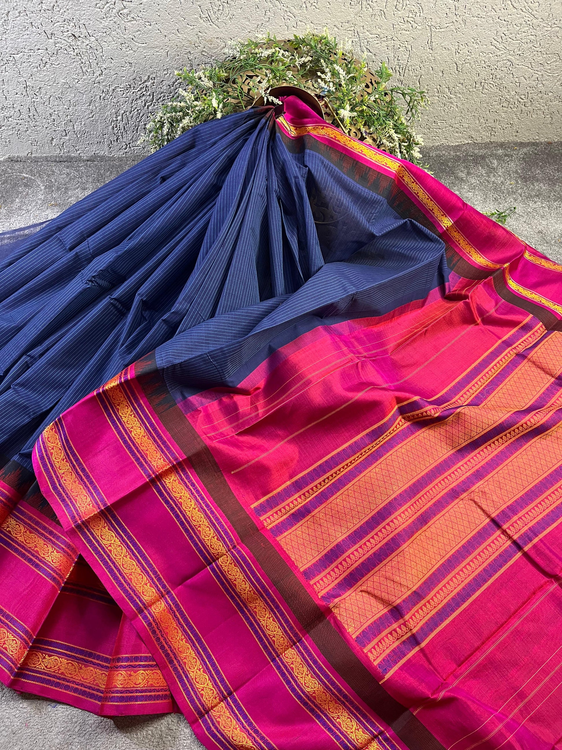 BLUE COTTON PURE HANDLOOM KANJIVARAM SAREE