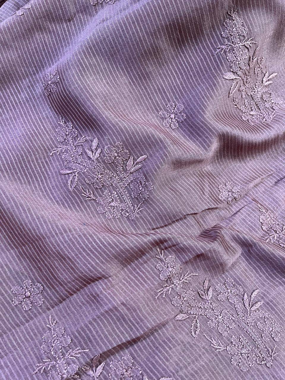 BROWN COTTON PURE HANDLOOM LUCKNOWI SAREE