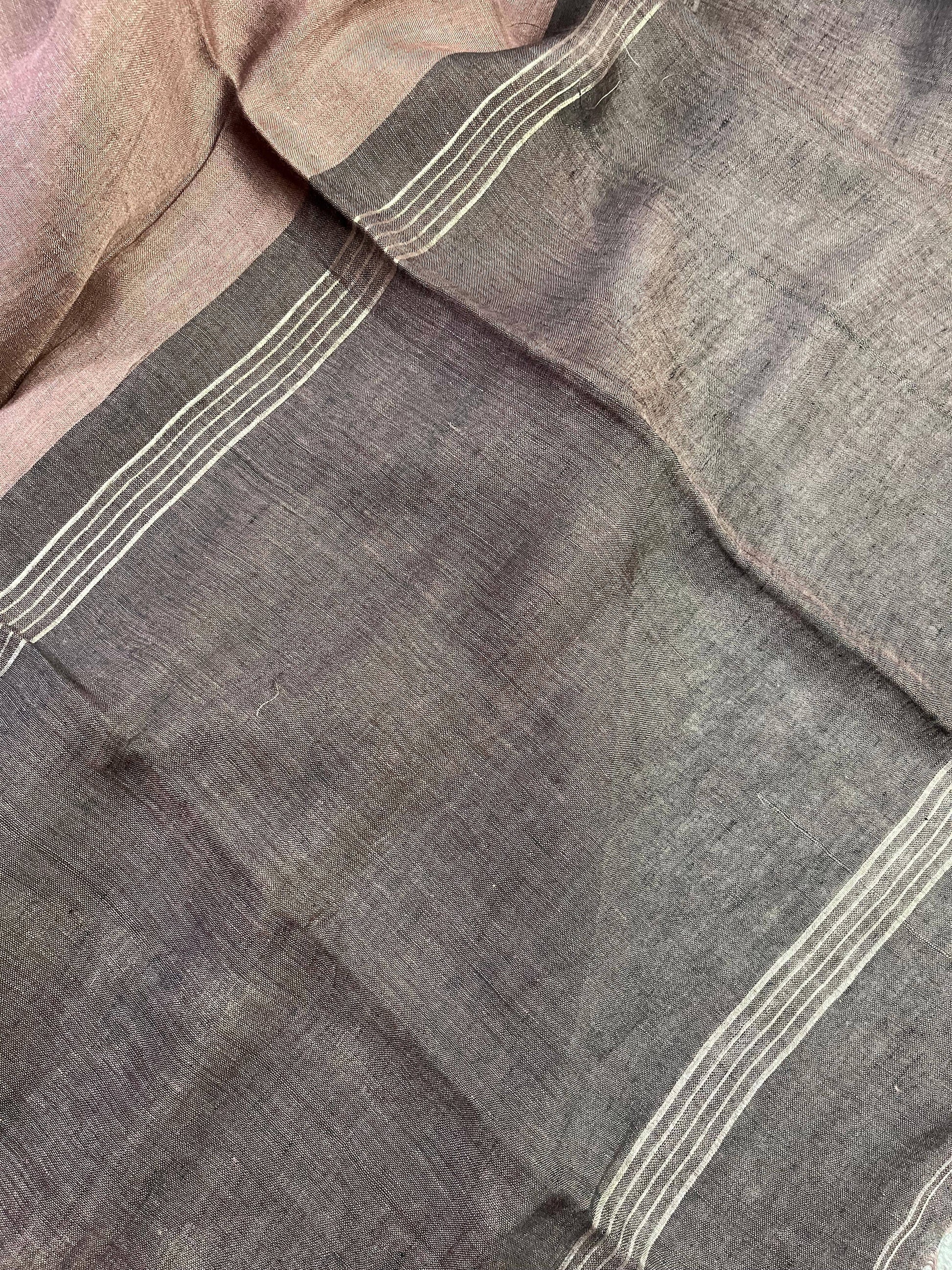 BROWN PURE HANDLOOM LINEN SAREE