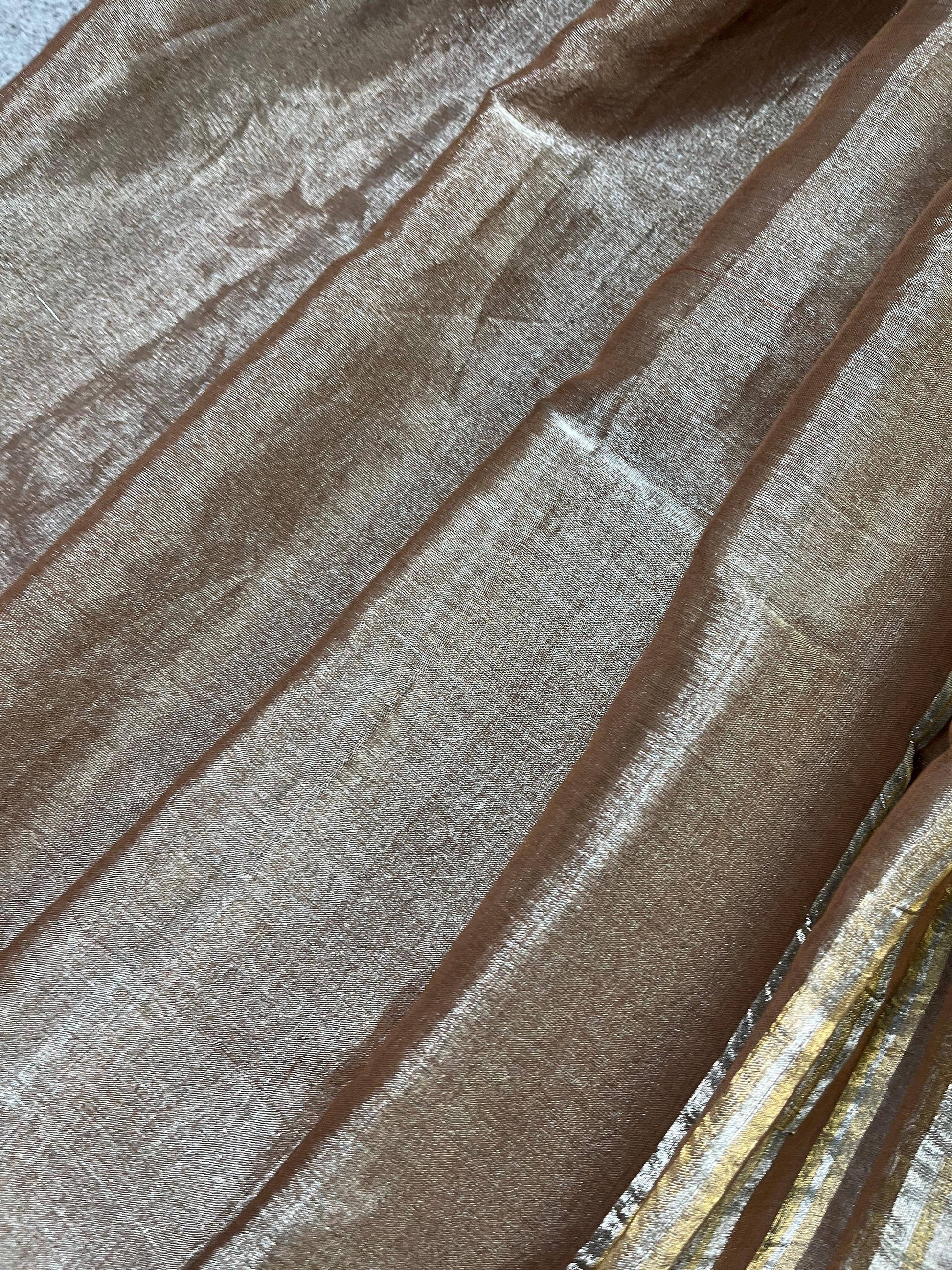 CAPPUCCINO TISSUE LINEN PURE HANDLOOM LINEN SAREE
