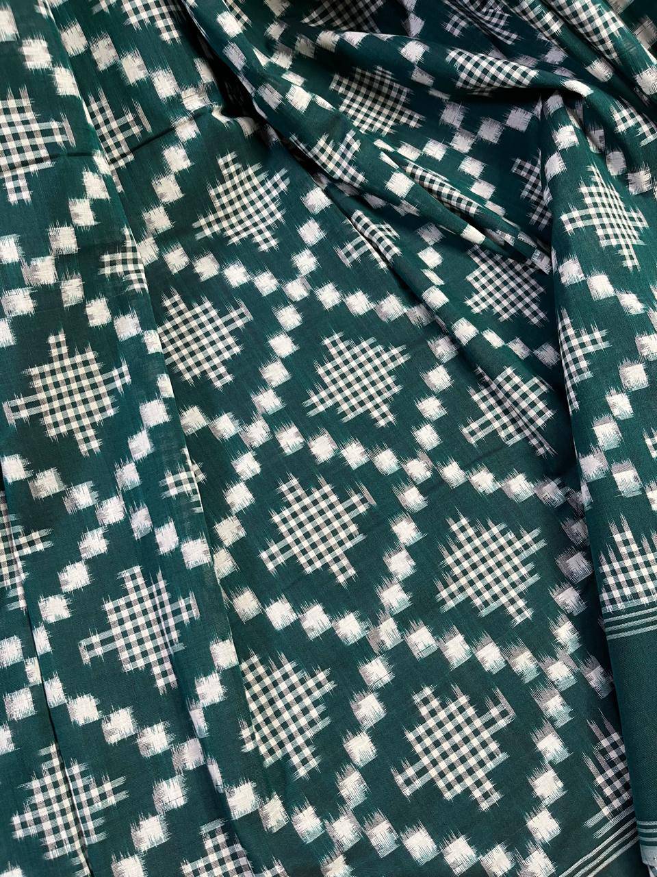 GREEN COTTON PURE HANDLOOM IKKAT SAREE