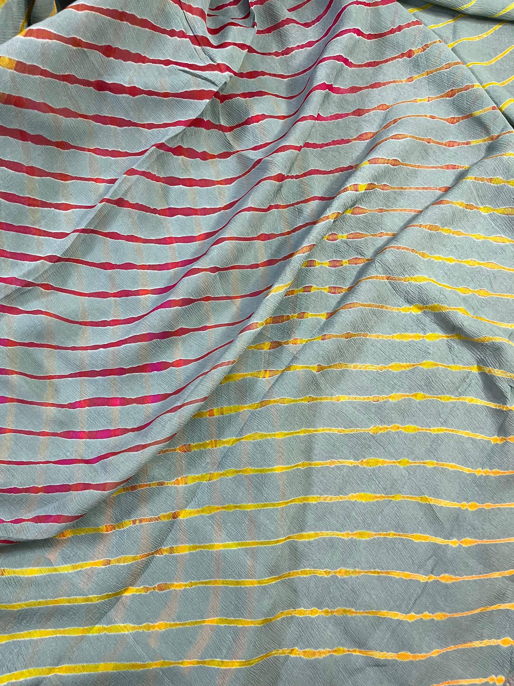 GREY AND OLIVE GREEN CHIFFON PURE HANDLOOM LEHERIYA SAREE