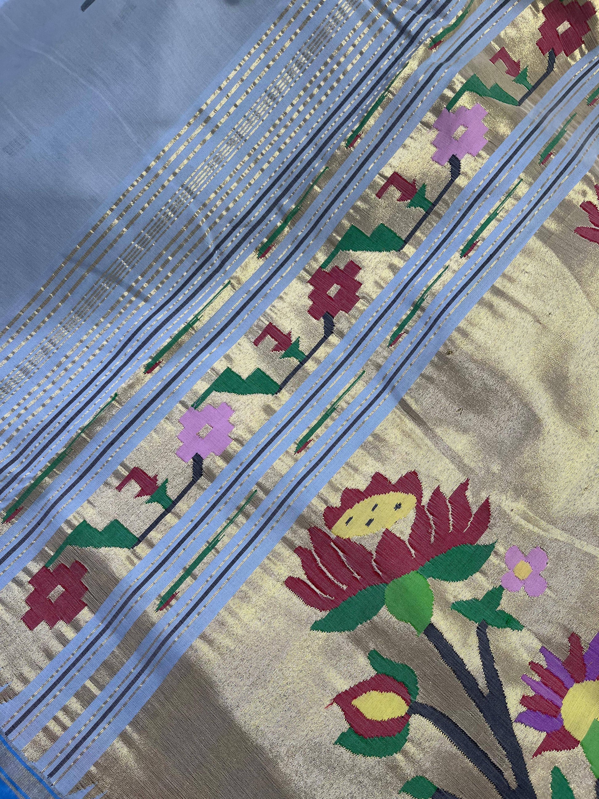 ICE BLUE COTTON PURE HANDLOOM PAITHANI SAREE