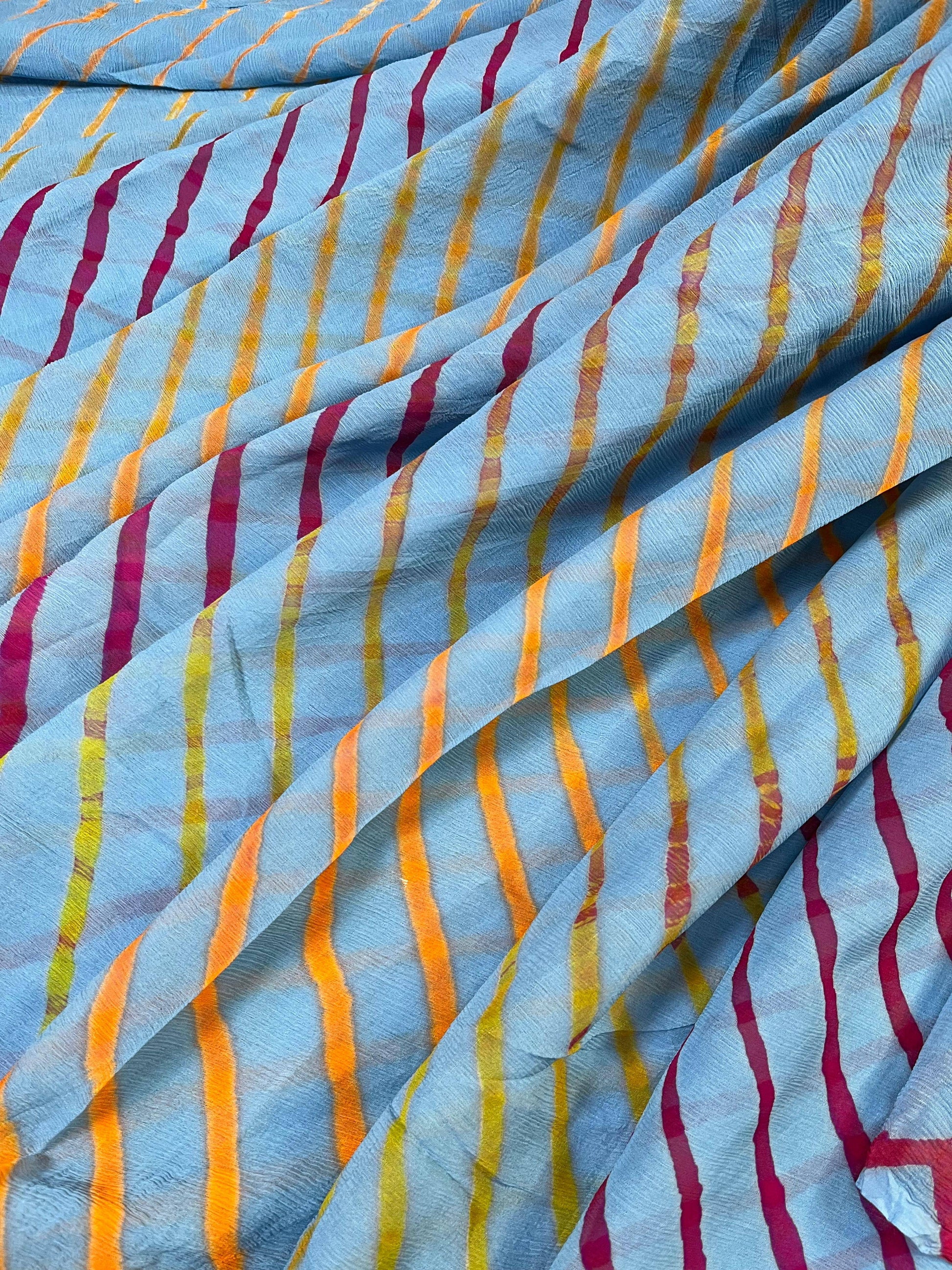 LIGHT BLUE CHIIFON PURE HANDLOOM LEHERIYA SAREE