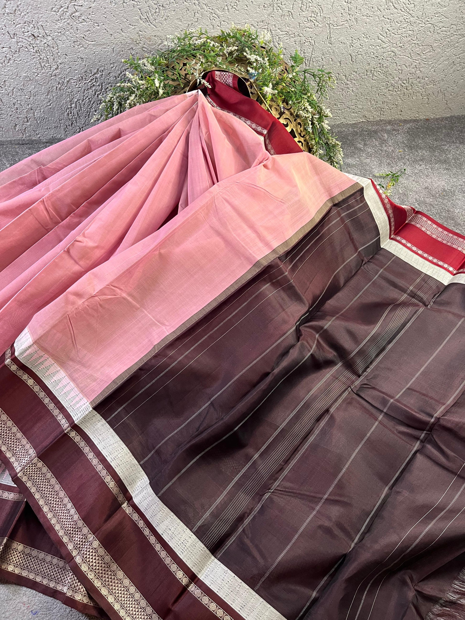 LIGHT MAUVE COTTON PURE HANDLOOM KANJIVARAM SAREE