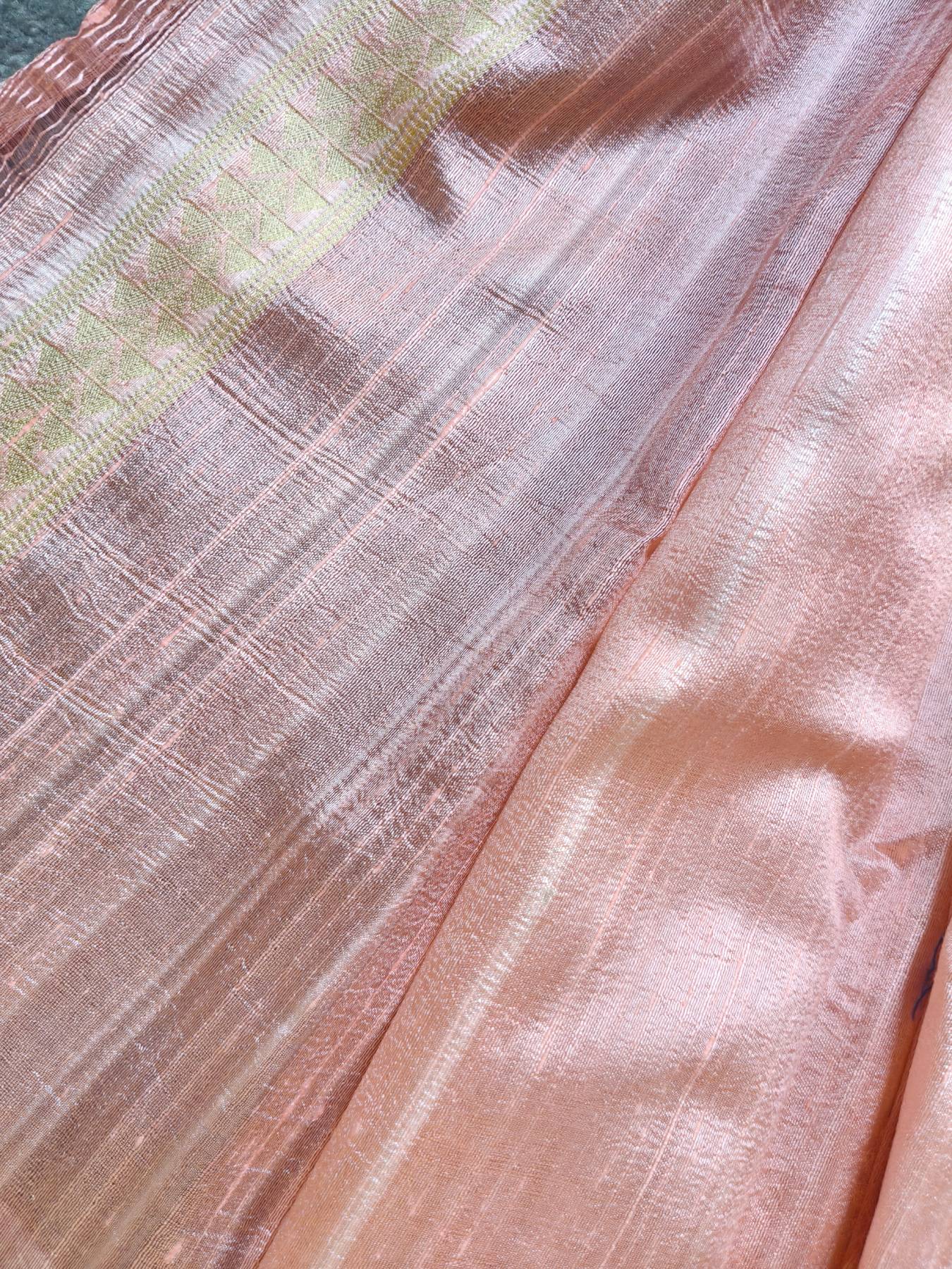 LIME GREEN PEACH SHADED DUPION SILK PURE HANDLOOM BANARASI SAREE