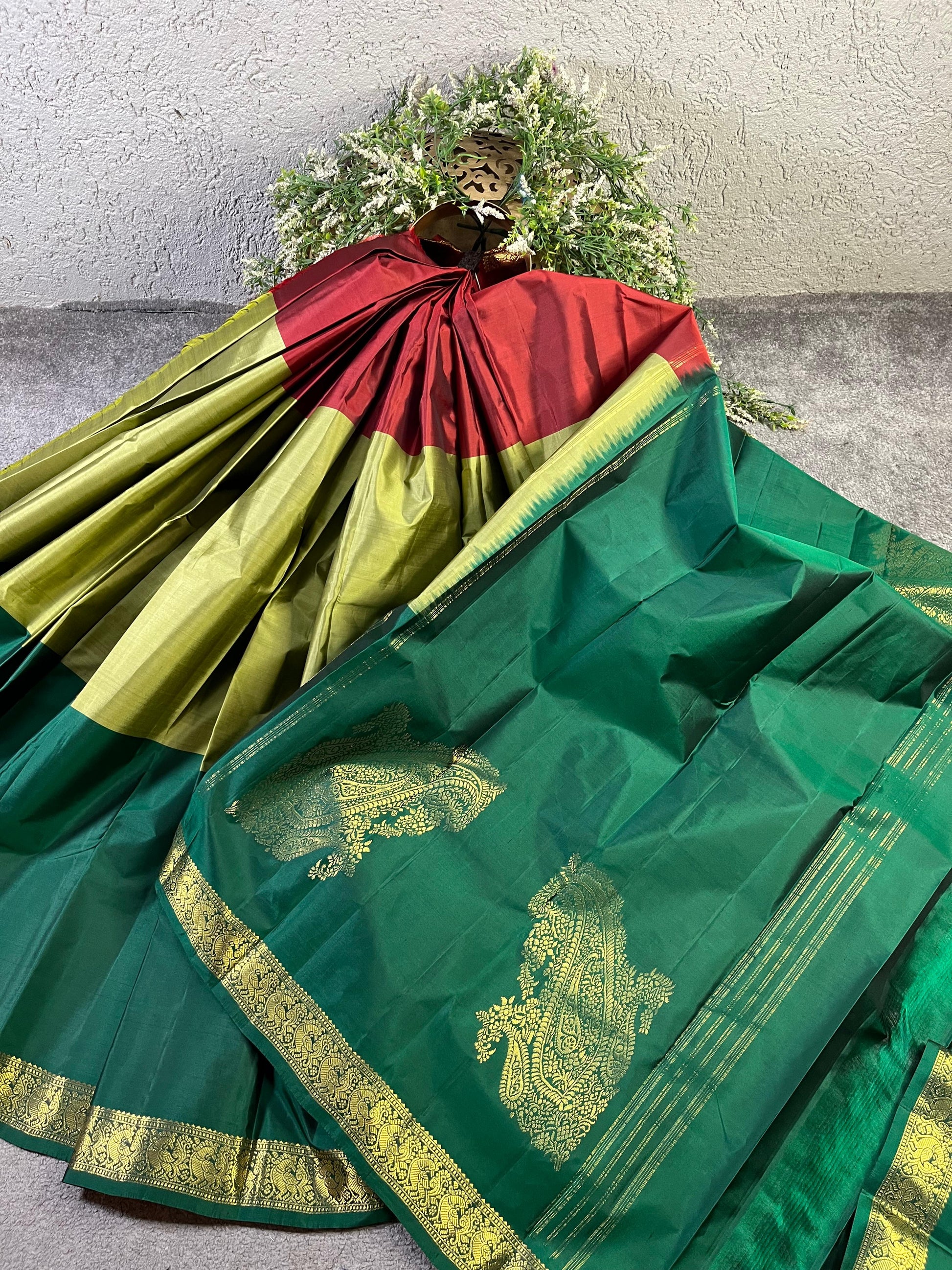 MEHENDI GREEN PURE HANDLOOM MUBBAGAM KANJIVARAM SILK SAREE