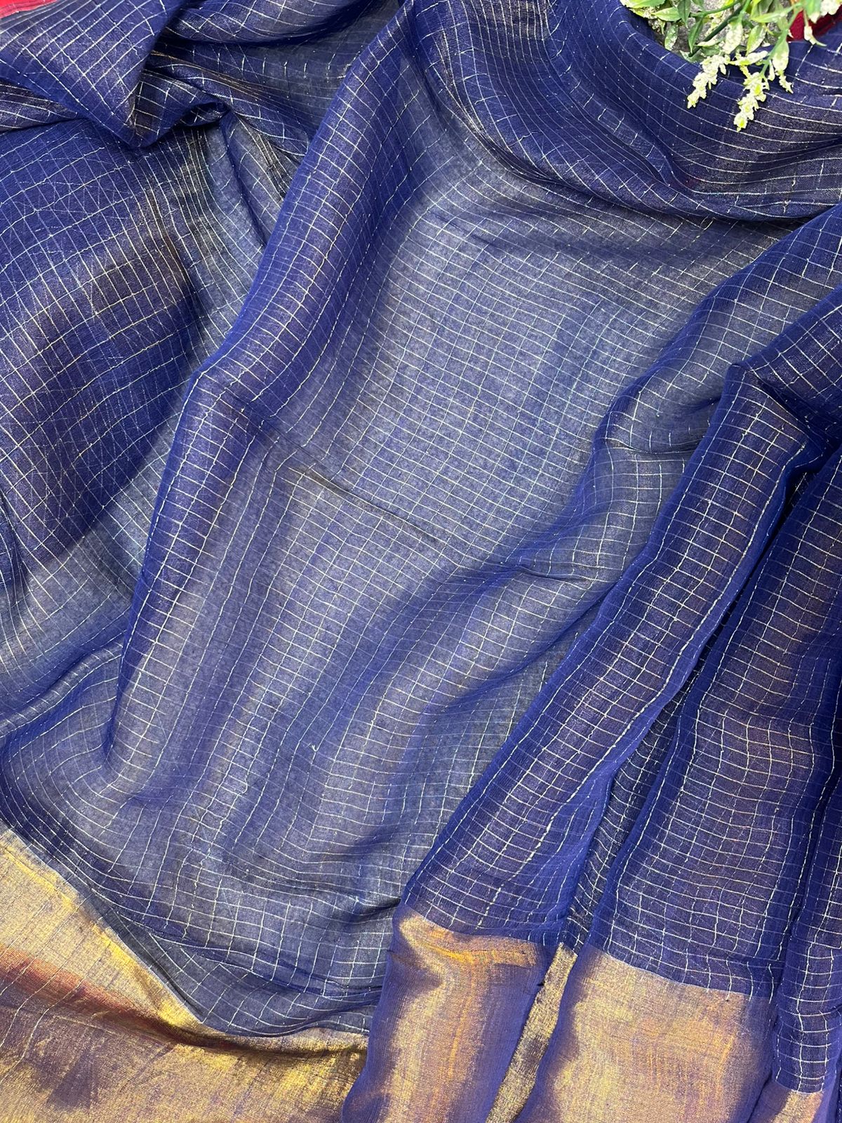 NAVY BLUE MUL TISSUE PURE HANDLOOM SAREE