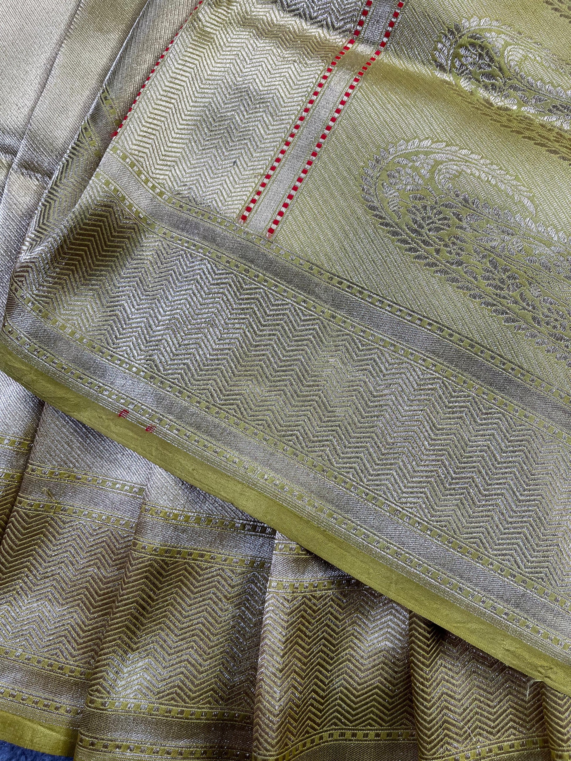 NEON GREEN KATAN TISSUE PURE HANDLOOM BANARASI SAREE
