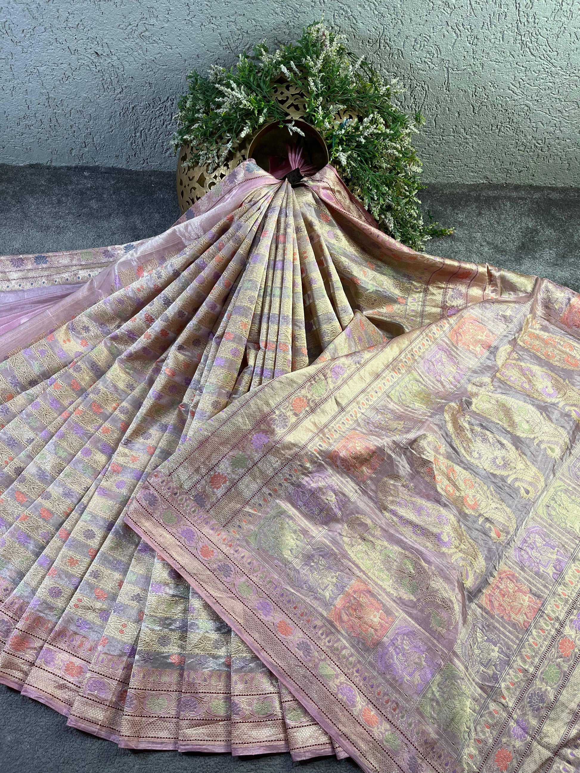 PINK TISSUE SILK PURE HANDLOOM BANARASI SAREE