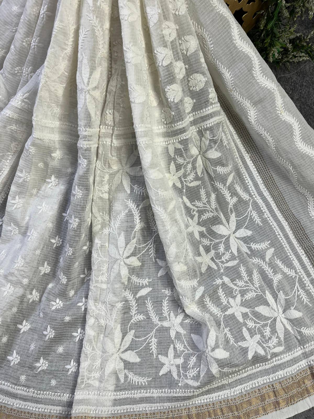 WHITE COTTON PURE HANDLOOM LUCKNOWI DUPATTA